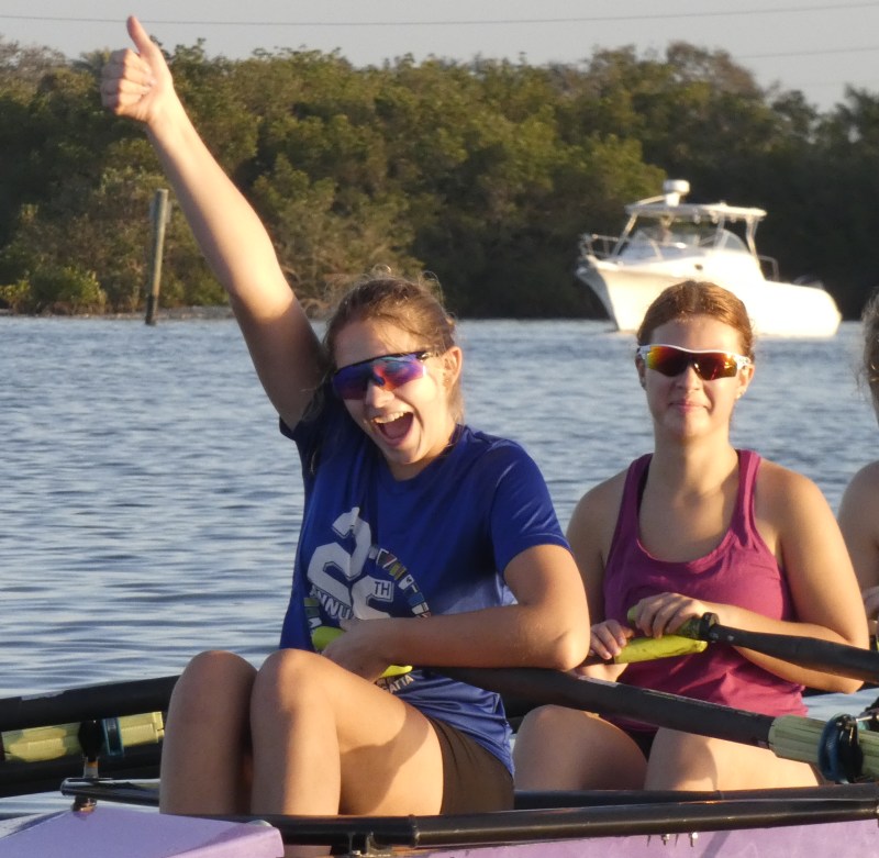 Rowing on the water, building physical strength and team bonds. Beach swim near Midnight Pass. - Friday